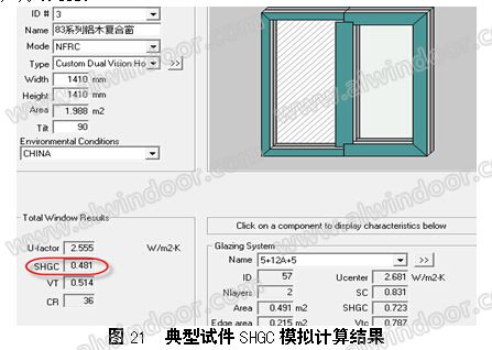 表4可以看出,經修正后的SHGC實測值與計算結果差比在5%以內,具有良好的一致性,則試件的SHGC實測值為0.49。