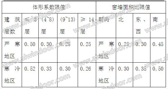 2.1.3體形系數(shù)限值和窗墻面積比限值不大于下表規(guī)定
