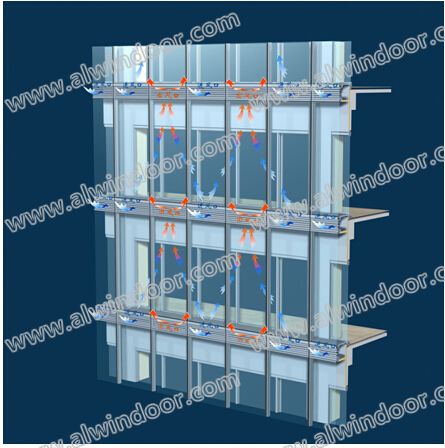 1、雙層熱通道外循環幕墻工作原理:
