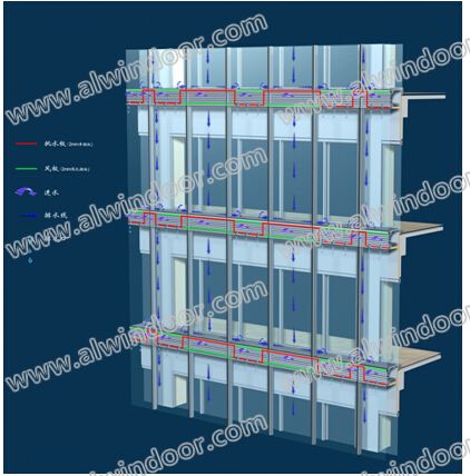 2、雙層熱通道外循環幕墻防水設計: