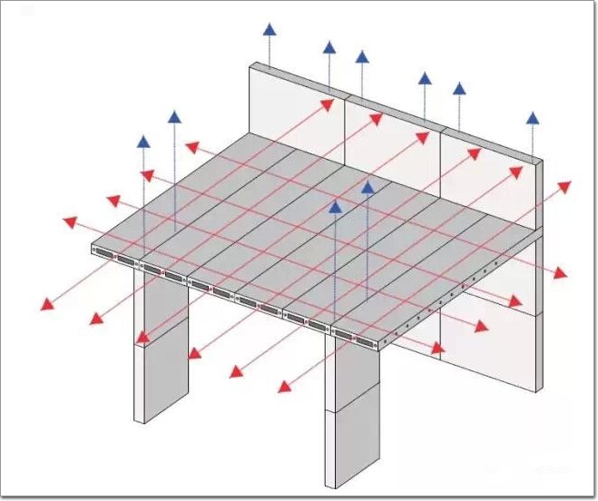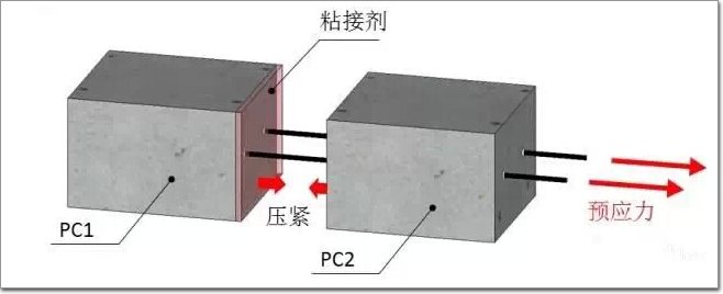 預應力PC建筑在設計中將預先可能發生的拉應力(詞條“拉應力”由行業大百科提供)轉化為壓應力。通過預應力將零散的PC構件牢固地緊壓在一起,構件之間為壓應力,受力面為整個接觸面。這種結構體系改變了現有用濕法現澆方式連接各處節點的構造做法,在地面以上的結構中,可以完全取消所有的節點現澆、樓板疊合現澆等濕法作業,成為名符其實的全干法施工。