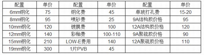 9.常用配置玻璃市場價格表:(以南玻為例)
