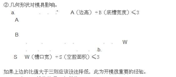 如果上邊的比值大于三則應該設法降低,此為開模很重要的經驗。
