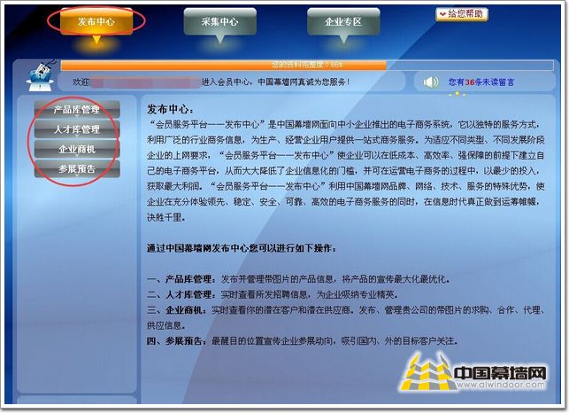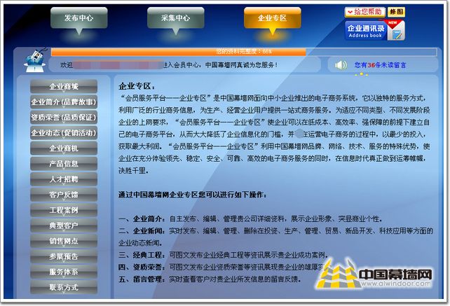 在專(zhuān)區(qū)業(yè)頁(yè)的最左側(cè)點(diǎn)擊【我的幕墻網(wǎng)】(如圖02)。
