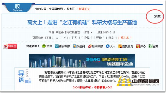 另外,會(huì)員中心還提供了【我的收藏】功能,當(dāng)您在站內(nèi)看到感興趣的新聞、產(chǎn)品或是想關(guān)注某位專(zhuān)家,那么都可以收錄到您的產(chǎn)品庫(kù)中,找到新聞?wù)捻?yè)面右上方單擊【收藏】按鈕,該篇新聞則即刻被收錄(如圖12)。