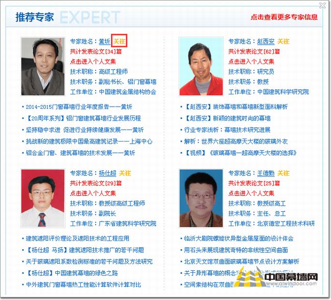 如果想關(guān)注某位專(zhuān)家或是收藏他們的相關(guān)論文,則在幕墻網(wǎng)首頁(yè)點(diǎn)擊【專(zhuān)家?guī)臁炕蚴侵苯铀阉?如圖15)。