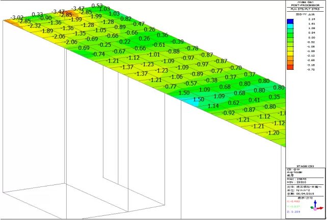 第2階段拱下結構應力(N/mm2,沿長度方向)