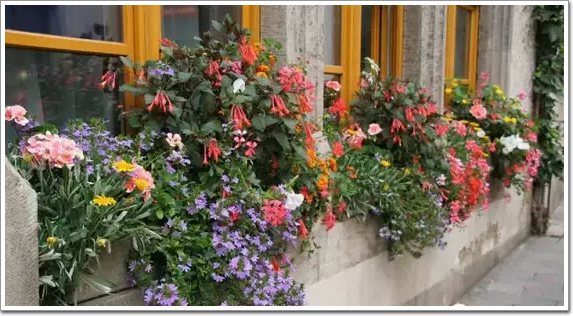 再看這一張照片,室外的窗臺上也是裝滿了花盆和鮮花,難道德國人都不開窗戶的嗎?當(dāng)然不!因?yàn)樗麄兊拇皯羝匠8揪筒粫騼?nèi)或向外完全平開!最多是內(nèi)倒通通風(fēng),而窗戶內(nèi)倒時(shí)候根本就不影響這些綠植!