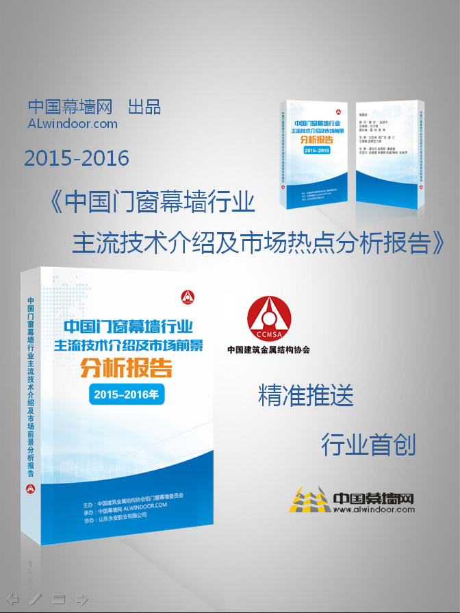 隨著建筑門(mén)窗幕墻行業(yè)的快速發(fā)展,建筑門(mén)窗(詞條“窗”由行業(yè)大百科提供)幕墻技術(shù)也得到較快提升,新產(chǎn)品、新技術(shù)不斷涌現(xiàn),推動(dòng)了行業(yè)健康發(fā)展。為了集中展示建筑門(mén)窗幕墻行業(yè)所取得的豐碩成果,總結(jié)行業(yè)發(fā)展所取得的成功經(jīng)驗(yàn),特別是展現(xiàn)行業(yè)主流技術(shù)的發(fā)展現(xiàn)狀和未來(lái)趨勢(shì),匯總行業(yè)相關(guān)信息和商機(jī),鼓勵(lì)企業(yè)進(jìn)行技術(shù)創(chuàng)新和管理創(chuàng)新,宣揚(yáng)先進(jìn)的企業(yè)文化,展望行業(yè)美好的發(fā)展前景,鋁門(mén)窗幕墻委員會(huì)擬出版《中國(guó)門(mén)窗幕墻行業(yè)主流技術(shù)介紹及市場(chǎng)熱點(diǎn)分析報(bào)告》以下簡(jiǎn)稱(chēng)《報(bào)告》。希望廣大會(huì)員單位積極參與和支持此項(xiàng)工作,行業(yè)有識(shí)之士積極配合,群策群力,完成《報(bào)告》的編寫(xiě)與發(fā)行工作。