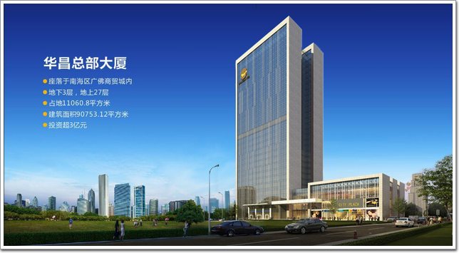 廣東有色金屬交易中心的首批大型綜合項目——廣佛國際商貿城中心,多家鋁型材大企業共同進駐,華昌鋁業作為本土鋁型材龍頭企業,在此興建了華昌總部大廈,具有重要示范意義。