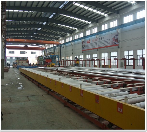 江蘇三期投產的5000噸擠壓(詞條“擠壓”由行業大百科提供)機