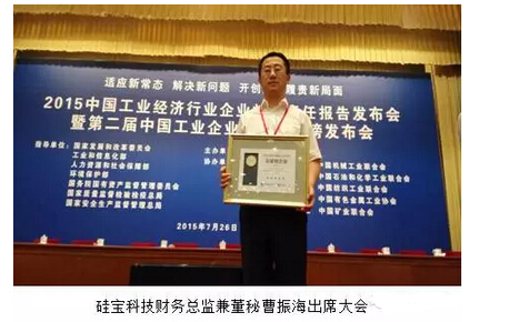 2015年7月26日,由中國工業(yè)經(jīng)濟(jì)聯(lián)合會(huì)主辦,國家發(fā)展和改革委員會(huì)、工業(yè)和信息化部等國務(wù)院有關(guān)部門指導(dǎo),中國建材集團(tuán)、中國石化集團(tuán)等企業(yè)共同協(xié)辦的“2015中國工業(yè)經(jīng)濟(jì)行業(yè)企業(yè)社會(huì)責(zé)任報(bào)告發(fā)布會(huì)暨第二屆中國工業(yè)企業(yè)履責(zé)星級(jí)榜發(fā)布會(huì)”,在北京人民大會(huì)堂隆重舉辦。中國工業(yè)經(jīng)濟(jì)聯(lián)合會(huì)會(huì)長李毅中、聯(lián)合國工業(yè)發(fā)展組織代表、主要全國性新聞媒體代表等近600人出席會(huì)議。成都硅寶科技股份有限公司財(cái)務(wù)總監(jiān)兼董秘曹振海先生受邀出席大會(huì)。