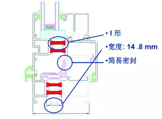 在型材外框設計時單獨設計外框的排水腔、組角腔。形成多腔結構使氣密性有一個較大的提高,從而進一步提高節能性能。