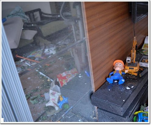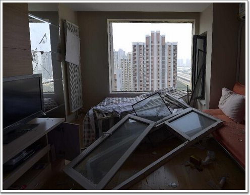 8月13日拍攝的爆炸地點附近的萬科清水藍灣小區一住戶受損情況