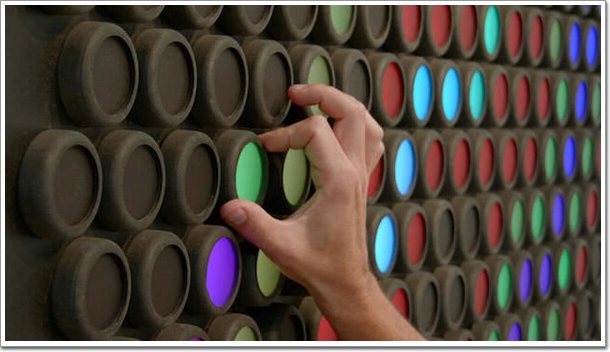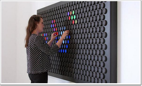 最近,舊金山的設計工作室 Hero Design設計了一個可以互動的燈光幕墻。幕墻由464個旋鈕的LED 燈組成。參與者只要轉動旋鈕,LED燈就能呈現(xiàn)出不同的顏色。人們可以通過光線創(chuàng)造出自己的作品了。這個互動裝置可以用在品牌的一些落地活動里。