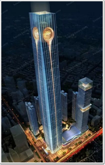 沈陽寶能環(huán)球金融中心,該項目總投資額約100億元,其中超高層主樓和副樓為辦公和酒店,樓高分別為565米和328米,建成后將成為中國東北地區(qū)最大城市沈陽的地標建筑。高565米的主樓將成為沈陽的第一高樓,