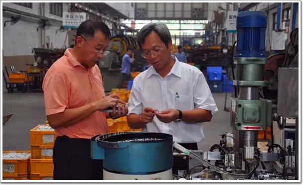 隨后,協會領導來到合和五金車間實地考察生產現場,重點深入模具車間、壓鑄車間、自動沖壓車間、噴涂(詞條“噴涂”由行業大百科提供)車間、自動機加工車間及橡塑事業部車間等生產現場,視察合和五金具有先進性代表生產工藝和制造流程的信息化管理。每到一地,協會領導都認真聽取劉學林總裁助理對生產、品質、工藝、成本、數據管理、技術體系及制造鏈的發展性構建和系統性運營介紹,詳細了解合和五金的運營情況和發展規劃。