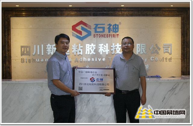 活動期間,主辦方中國幕墻網(wǎng)在四川新達粘膠科技有限公司的營銷中心,為“石神”粘膠品牌冠名,并承辦本次設計師綠色環(huán)保建筑沙龍活動舉行授牌儀式。