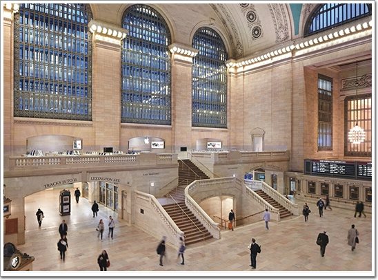 上圖展示的是蘋果在著名的紐約中央車站內(nèi)部設(shè)立的一家專賣店。中央車站與賓夕法尼亞車站(紐約市)同為大紐約地區(qū)重要的交通樞紐,也是美國(guó)最繁忙、最著名的鐵路車站之一,其客流量可見一斑。