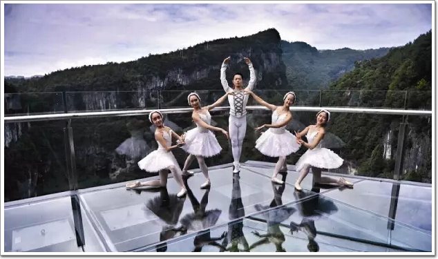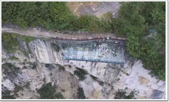 高空玻璃眺臺散布于世界各國,就功能來說,都是為了觀景或體驗高空驚險感,增加游玩樂趣。天生三硚懸崖玻璃眺臺由北京清華規劃院設計,從規劃到建設完成歷時近三年,眺臺總面積286平方米,懸空外挑11米,長26米,建在天生三硚的第一座硚天龍硚的天坑懸崖頂上,垂直高度達280米,相當于近100層樓的俯瞰高度。