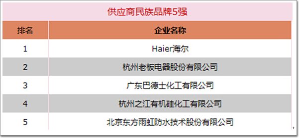 作為《2015中國房地產企業品牌價值測評報告》的重要組成部分,“2015中國房地產供應商民族品牌5強”是在房地產供應鏈中擁有絕對話語權的全資民族企業,她們是各自領域中受人尊敬的行業翹楚,在一定程度上代表了各自領域目前在國內的發展水平。海爾集團、杭州之江公司等5家民族品牌榮登榜單。杭州之江成為自《中國房地產企業品牌價值測評報告》發布以來,首家進入榜單的密封膠生產企業,為自身也為國產密封膠行業贏得了榮譽。