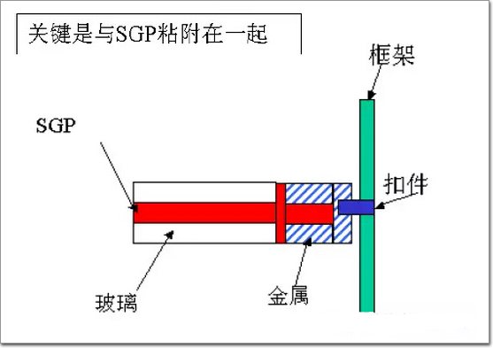 建筑幕墻、門窗主要用干法夾層玻璃,符合上述要術有機膠合(詞條“膠合”由行業(yè)大百科提供)層材料主要為PVB膠片,EVA膠片用得很少。EVA全名為乙烯-醋酸乙烯共聚物,具有良好的耐水性(詞條“耐水性”由行業(yè)大百科提供),但耐紫外性能一般,在日光下易發(fā)黃老化。目前,EVA夾層玻璃主要用于室內(nèi)隔斷、裝飾比較多,室外幕墻一般不適合用EVA。近年來開發(fā)的SGP新膠片,性能優(yōu)良,SGP夾層玻璃在玻璃采光頂和玻璃外窗、幕墻應用前景廣闊、良好。SGP膠片是夾層玻璃離子聚合物中間膜. 美國杜邦公司生產(chǎn)的SGP離子聚合物中間膜性能優(yōu)異,撕裂強度是普通PVB膜的5倍,硬度是PVB膜的30-l00倍。