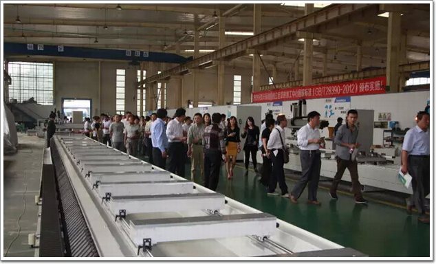 骨干企業(yè)代表、專家參觀鋸切中心及組角流水線操作演示