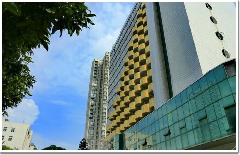 2015年9月22日,廣東廣州,黃埔區黨校內的2號辦公大樓,91個外露半圓型陽臺掛在大樓的外墻上,金色陽臺吸引眼球。