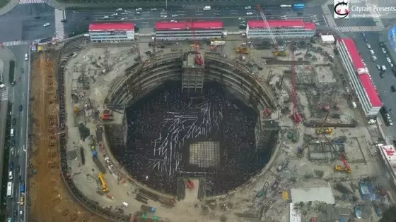 正在初步進入動工階段的上海中心大廈施工現(xiàn)場,本工程塔樓基坑開挖深度為31.10m,采用明挖順作法的基坑施工方法。