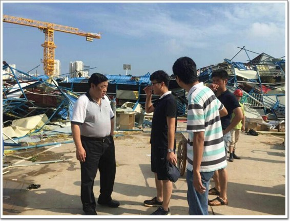 廈門國貿集團總裁陳金銘(左一)臺風過后第一時間到現場視察