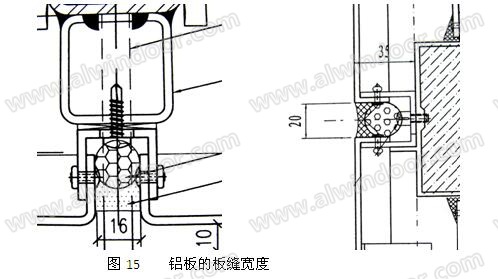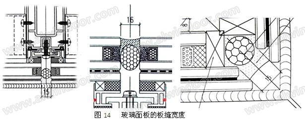 對于玻璃、金屬板這樣的光滑表面材料,膠縫設計要求膠縫寬度不小于膠縫厚度的2倍。所以通常膠縫寬度不小于10mm(圖14、圖15)。