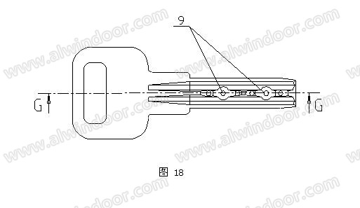 參閱圖15至圖19,在插入鑰匙8開鎖時,由于鑰匙8對應2個防撬鎖珠6的位置設有2個通孔9,防撬鎖珠6與鎖膽2沒有發生相對的位移,仍處于開啟位置,而其它下鎖珠5則移動至開啟位置,則可以順利轉動鎖膽2開鎖。
