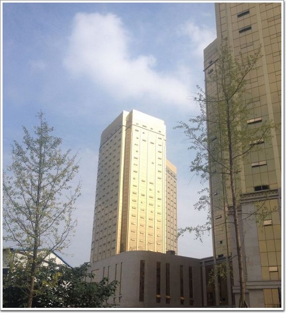兩幢大樓外形上略有差異,酒店采用中規中矩的長方體造型,寫字樓一角則設計為弧形,兩幢大樓外立面統一采用單元式全玻璃幕墻,由于幕墻都采用的金色鍍膜玻璃,且渾身無一絲雜色,可謂將“土豪金”進行到底,目前流行的24K金色鍍膜玻璃,特別是各類五星級酒店,高檔會所是尤其鐘愛,但傳統的工藝無法生產這種高級金色鍍膜玻璃,必須選用貴重金屬耙材通過鍍膜工藝在優質浮法玻璃表面均勻地鍍上多層貴重金屬或金屬氧化物膜層而成,這一類玻璃也成了高檔豪華的象征,更是五星級酒店內外墻裝修的首選。不過對這種新的高大上,舊了能丑哭的外墻得多費心思保養了,所謂的撞樓不可怕,誰丑誰尷尬,定期對幕墻的清洗也是非常必要的了。