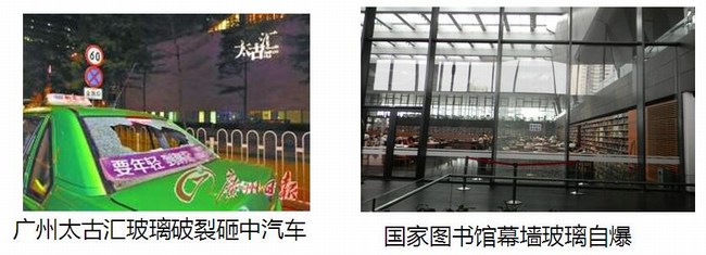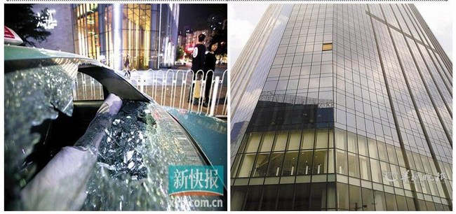 事件回放:2014年11月22日,廣州天河路太古匯高層玻璃幕墻在10分鐘內突然兩度自爆, 十多輛途經的車輛中招不同程度損傷。太古匯商場曾在2012年7月和9月發生過兩起玻璃墜落事件。