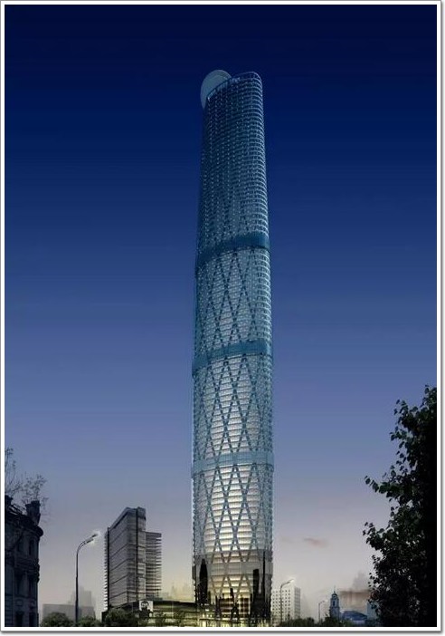 建筑標(biāo)高600米(國(guó)內(nèi)第一高塔),全球第一座雙水槽曲面單元式異型幕墻,建筑面積11萬(wàn)㎡,幕墻面積4萬(wàn)㎡。在世界超高層建筑發(fā)展歷史中具有里程碑意義。外表面為橢圓平面縮放與旋轉(zhuǎn)而形成的空間曲面。幕墻板塊由三角形的玻璃單元及四邊形蜂窩鋁板(詞條“蜂窩鋁板”由行業(yè)大百科提供)單元組成,每個(gè)板塊大小、尺寸均不相同,安裝在花欄狀外鋼筒與功能層樓板邊緣之間,安裝位置精度高,鋼梁穿過(guò)幕墻面防水難度大,主體結(jié)構(gòu)(詞條“主體結(jié)構(gòu)”由行業(yè)大百科提供)位移大,局部位移復(fù)雜。其設(shè)計(jì)、施工難度都是屬于世界頂尖級(jí)的。