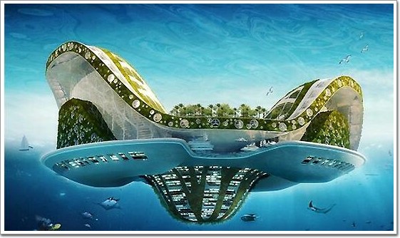 許多科學家曾經預言過,如果海平面持續上升,整個地球未來將成為一個水世界,我們人類將被迫放棄陸地,在水世界上重建家園。本圖所示的這個“游泳城市”似乎就是這樣一種思想的體現。這個“游泳城市”未來建筑設計方案是由安德拉斯-吉奧菲所創作,并在首屆“海洋替代設計大賽”中一舉奪魁。盡管在海洋上打造“游泳城市”可能要耗費巨額資金,但是它卻是未來基于海洋的人類社會建筑的一種模板。