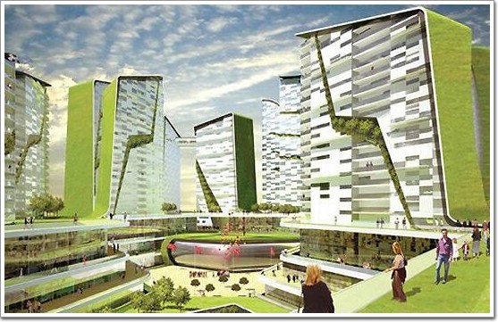 Gwanggyo綠色城是韓國首爾計劃建造的一座綠色新城。荷蘭著名的MVRDV建筑事務所負責設計Gwanggyo綠色城的建設方案。據建筑設計師介紹,Gwanggyo綠色城可以容納7.7萬居民,是一個可實現自給自足的綠色社區。綠色城最重要的特點就是其中的眾多未來派建筑和綠色環境。這種未來派建筑都是由一個個層疊的、但稍有偏移的環形結構組成。這些環形結構有兩種用途,其一就是用作陽臺,另一個用途就是室內公共會議或聚會場所。在未來派建筑中,既有辦公室,也有住宅和購物中心,其它城市生活所必須的設施也應有盡有。此外,這些建筑還具有過濾空氣和降低能耗的功能。
