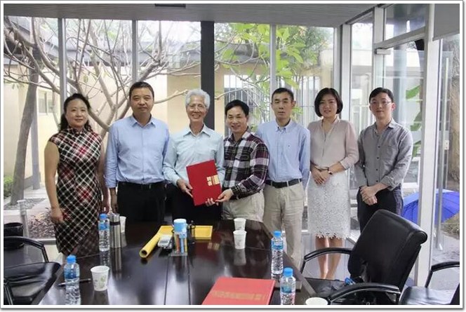 2016年11月22日,嶺南建筑大師、世博會“中國館之父”、中國工程院院士何鏡堂接受廣州集泰化工股份有限公司(以下簡稱“集泰化工”)的聘書,正式成為廣州集泰化工股份有限公司院士專家工作顧問,廣州集泰化工股份有限公司董事長兼總經(jīng)理鄒榛夫先生為其授予聘書,并受邀參觀何鏡堂院士工作室。