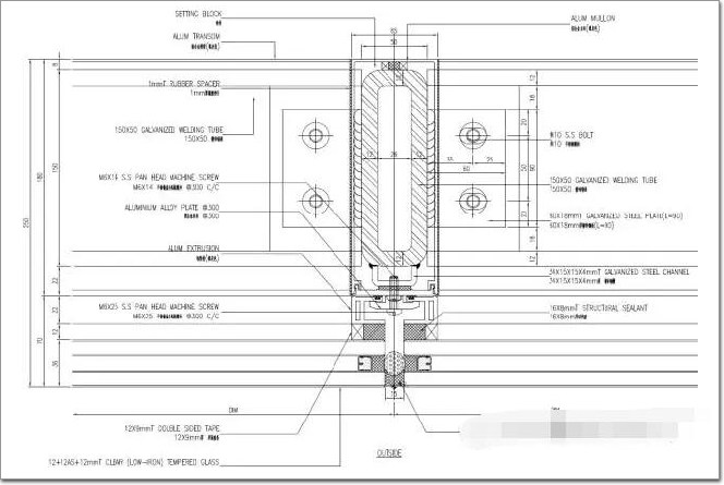 幕墻節點圖: