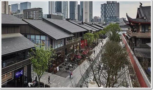 玻璃幕墻;成都遠洋太古里既傳統又現代,營造出一片開放自由的城市空間,建筑在反映“老成都”深厚人文內涵的同時也兼具了洋氣與時尚的現代屬性。