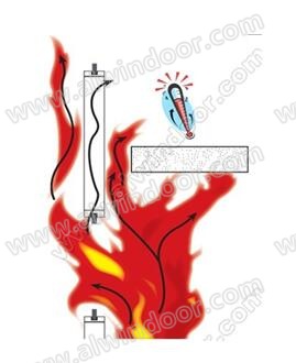 隨著室內溫度的不斷提高,室內外的壓差也在不斷增加。普通玻璃(非防火玻璃)在火焰的不斷沖擊下,往往會在15分鐘內破碎。大量的熱量和煙霧瞬間沖出室外,導致火勢向上蔓延。