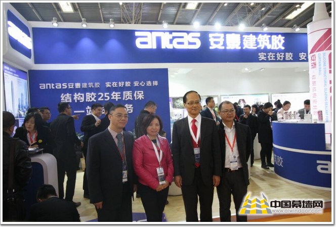 領(lǐng)導(dǎo)、嘉賓在廣州集泰化工股份有限公司(安泰建筑膠)展位合影