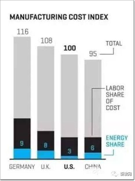 但是,中國制造業的綜合稅務跟美國比高35%,因為美國只征收所得稅,光賦稅就能省下一半。還有,美國能源也比中國便宜,天然氣價格只是中國的五分之一,電費是國內三分之一,水費連三分之一都不到。而且,還沒有過路過橋費用,運輸成本也大大降低了。