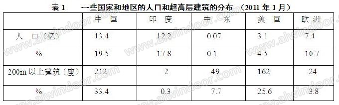 其中一些國家和地區(qū)的人口和超高層建筑的分布見表一。