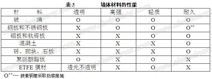 玻璃作為建筑材料,同時具備四大特點:透明、高強、輕質、耐久。而其他墻體材料,都不能同時具備這些特點(表3)。