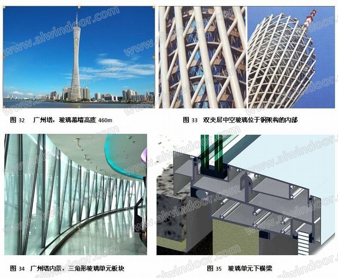 廣州東塔高度540m,玻璃幕墻,帶豎向陶板裝飾條(圖38)。單元式板塊。玻璃超白、夾層中空(圖39~圖44)。