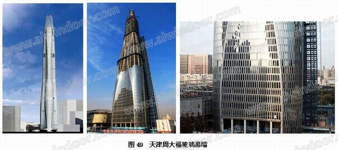 天津周大福高度530m,外形如同發(fā)射臺上豎立的火箭(圖49)。采用超白鋼化、夾膠中空玻璃,明框幕墻。