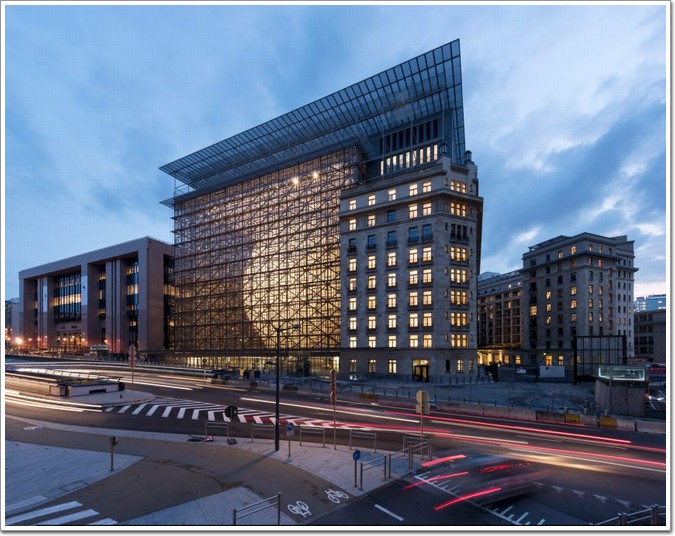 歐盟新總部大樓由比利時建筑工作室Samyn&Partners與意大利公司Studio Valle共同協作和英國工程師Buro Happold一起創作設計。按照原計劃,該大樓應該早在2012年就完工了,斥資2.4億歐元。只不過,在經過了幾次波折之后,它直到前不久才完工,并且多花了8000多萬歐元,總投資達到了3.21億歐元。