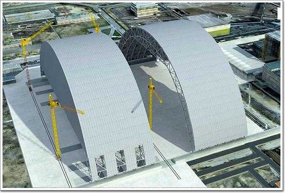 在切爾諾貝利核泄漏事故之后,前蘇聯工程師曾經匆忙搭建了一個混凝土掩體,以阻止放射性物質進一步外泄。現在,一座新的鋼鐵拱形建筑正在修建并采用鐵軌使其能夠在反應堆上方移動。這是一項極為困難的工程,工人們隨身攜帶放射性測量計,一旦數值過高他們就必須馬上撤離。
