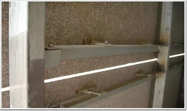 所謂的開放式石材,內的鍍鋅鋼龍骨都生銹了,且窗洞口漏水,其中主要原因是甲方請的管理公司造成的,管理公司(管理公司的名字就不說了,呵呵)的人不懂裝懂,瞎指揮,后來沒有辦法了,整個工程石材外又重新打了膠!